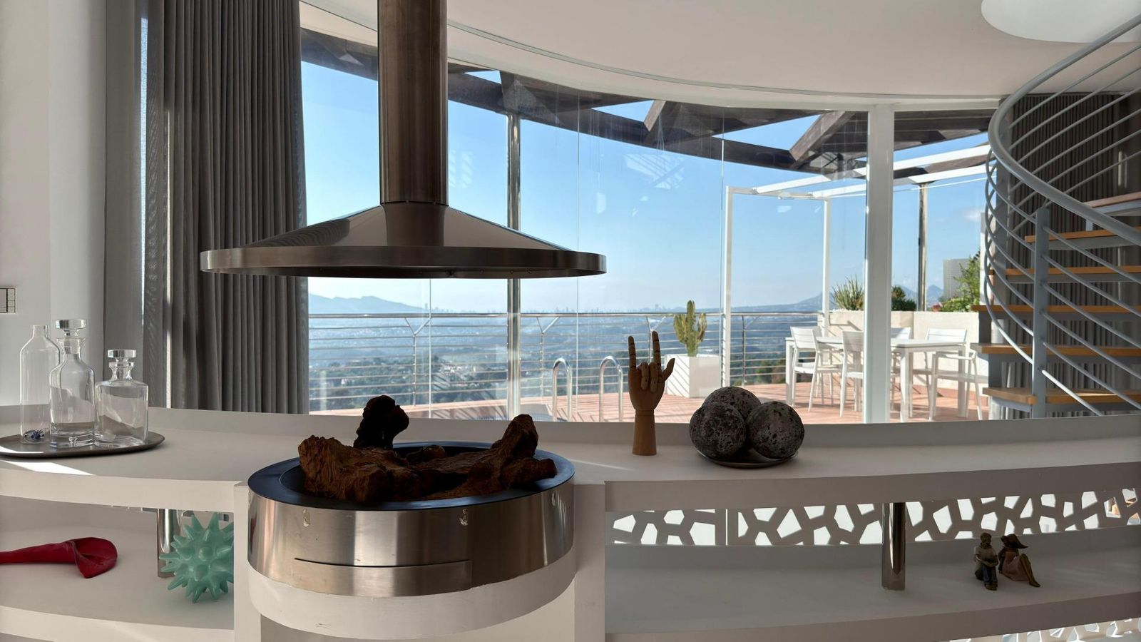 Elegant villa in Altea la Vella with sea viewsDiscover this residential gem located in the quiet and exclusive area of 'Alteart'. Just 50 minutes from Alicante-Elche Airport and 1.5 hours from Valencia Airport, this villa offers the perfect location for quiet family life. In addition, it is just 10 minutes from the beautiful beach of Altea.**Featured Features:**- 3 Floors- Private garage with space for 2 vehicles- 4 Bedrooms- 4 Bathrooms- Elevator- Large Terrace with Balcony- Private pool- Private BBQ Area**Exceptional Amenities:**The house has central heating and air conditioning to guarantee your comfort in all seasons. Fully furnished with new and modern furniture, this property offers an elegant and welcoming space.**Strategic location:**The proximity of several schools in the area makes this chalet the ideal choice for families. Furthermore, for foreign buyers, the acquisition of this property offers the opportunity to obtain a residence permit as an investor.**Interior distribution:**Main floor- Kitchen fully equiped- American-style living-dining room- Access to the large terrace with views of the sea, Benidorm and Altea. The terrace includes a private pool and barbecue area.Second floor- 3 Bedrooms with private bathrooms- Children's areaLow levelBalcony accessGarage accessService area with washer and dryerThis property is a perfect fusion of comfort, style and location. Don't miss the opportunity to call this chalet your home! Contact us for more details and a visit.