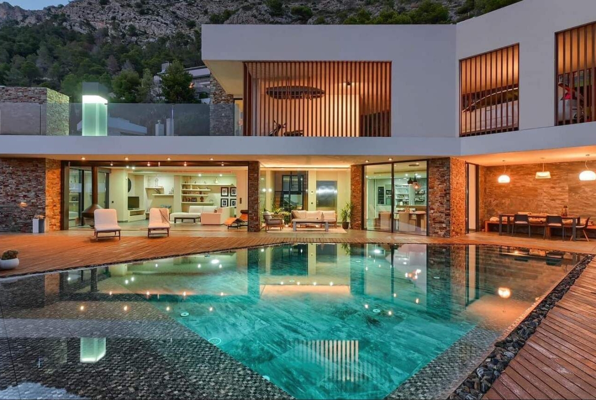We present a sophisticated contemporary villa in the exclusive community of Altea Hills, with 24/7 surveillance to guarantee the safety of its residents. This elegant property stands out for its spacious architecture and innovative interior design, which adopts a philosophy of open spaces, clean lines and harmony with nature.