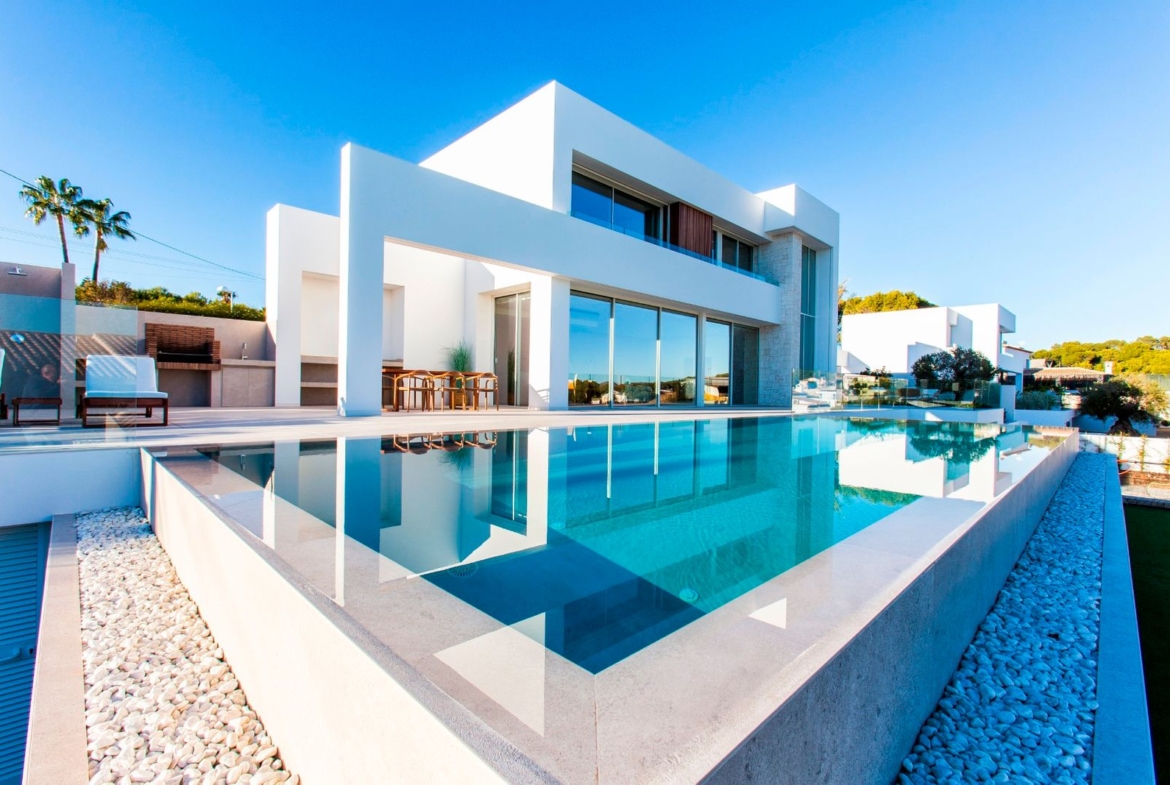 Nestled in the serene La Fustera neighborhood of Benissa, this striking 2023-built villa offers a blend of contemporary luxury and Mediterranean charm. Just a short stroll from the sandy shores and a quick drive to the lively hubs of Calpe and Moraira, this south-east facing retreat captures breathtaking sea views from its elevated 800 m² plot. Spanning 355 m² across three thoughtfully designed levels, this home is a haven of style and comfort.