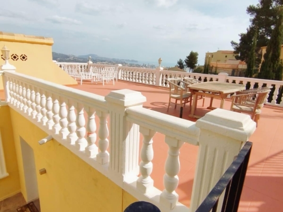 We present this magnificent villa in Calpe (Alicante), located in one of the most peaceful and prestigious areas of the municipality – Cucarres. An elevated location that guarantees privacy, silence, and spectacular panoramic views of the Mediterranean Sea and the mountains. Just 5 minutes from the center of Calpe, its fine sandy beaches, restaurants, supermarkets, and all kinds of services.The property, with a built area of approximately 384 m², sits on a plot of 800 m² and has been designed to offer maximum comfort, efficiency, and well-being. The southeast orientation guarantees natural light throughout the day, creating warm and bright spaces.The villa is distributed over two independent floors, allowing them to be used together or separately — ideal for both living and renting out part to generate additional income. It has a total of 4 spacious bedrooms and 5 bathrooms, three fully equipped kitchens (one of which is exterior, perfect for barbecues and outdoor gatherings), as well as several terraces with unobstructed views of the sea and mountains.The home features gas heating (independent tank), a complete air conditioning system, and solar panels, providing it with notable energy autonomy.Outside, we find a pool area surrounded by nature, a perfect space to enjoy the sun and the calm that the surroundings offer. Additionally, the property includes a private garage and is sold fully furnished and ready to move in.This villa represents a unique opportunity for those seeking an authentic Mediterranean lifestyle, with all modern comforts, in a serene environment and with views that inspire every day.