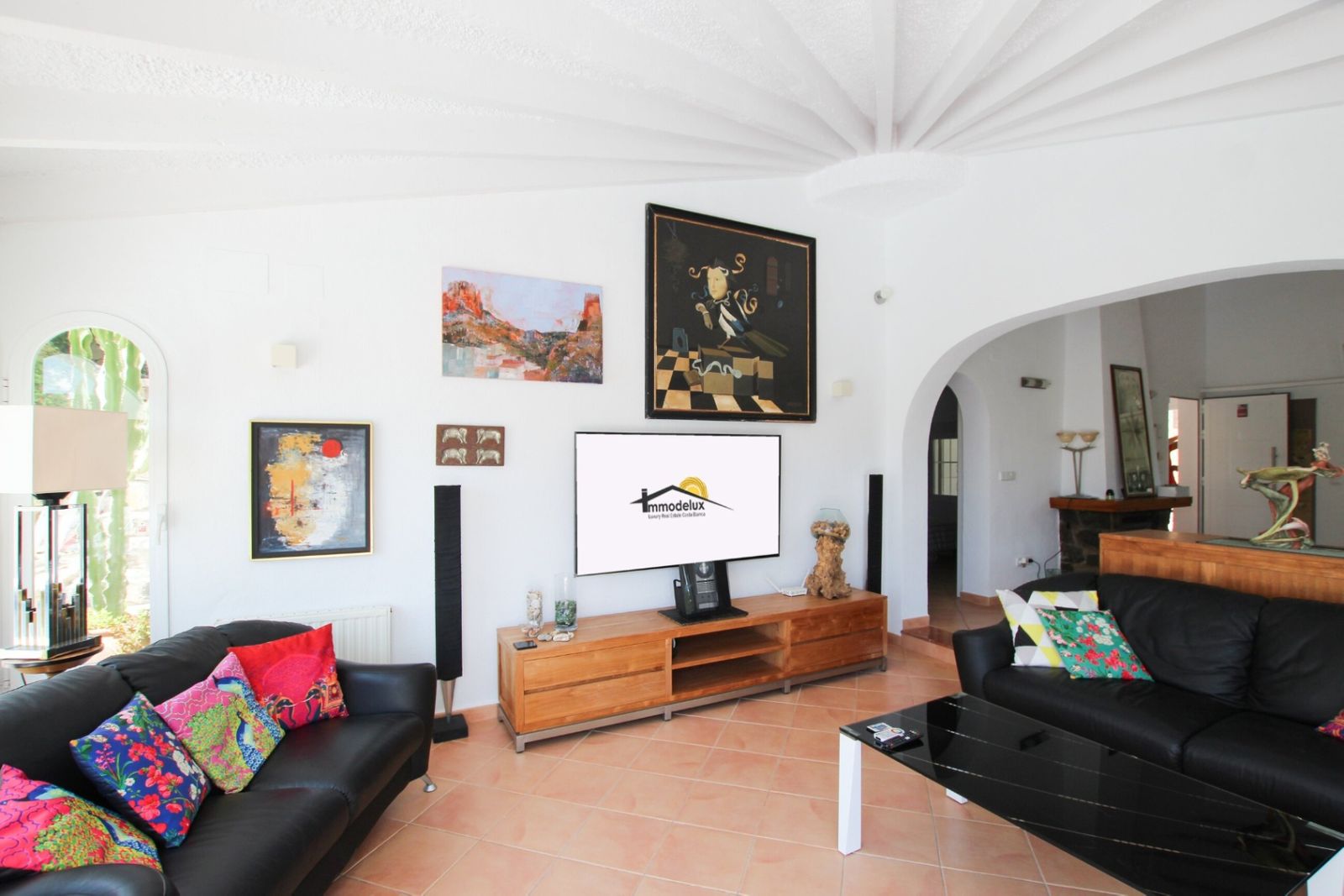The design focuses on maximizing light entry, with large floor-to-ceiling windows that create a warm and inviting atmosphere throughout the day. The spacious living room, seamlessly connected to the kitchen, provides direct access to a sunny terrace, heated swimming pool, BBQ, and low-maintenance garden — perfect for outdoor living year-round.