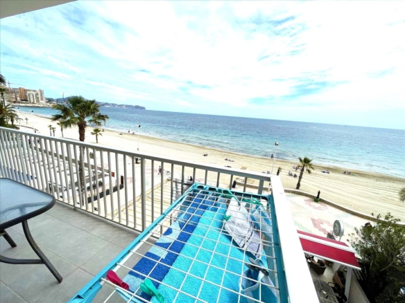 This 80 m² apartment is located on the fifth floor of the building, which features an elevator, facing southwest. It is situated just 100 m from the beach, 50 m from restaurants, 75 m from supermarkets, and 75 km from Alicante Airport.