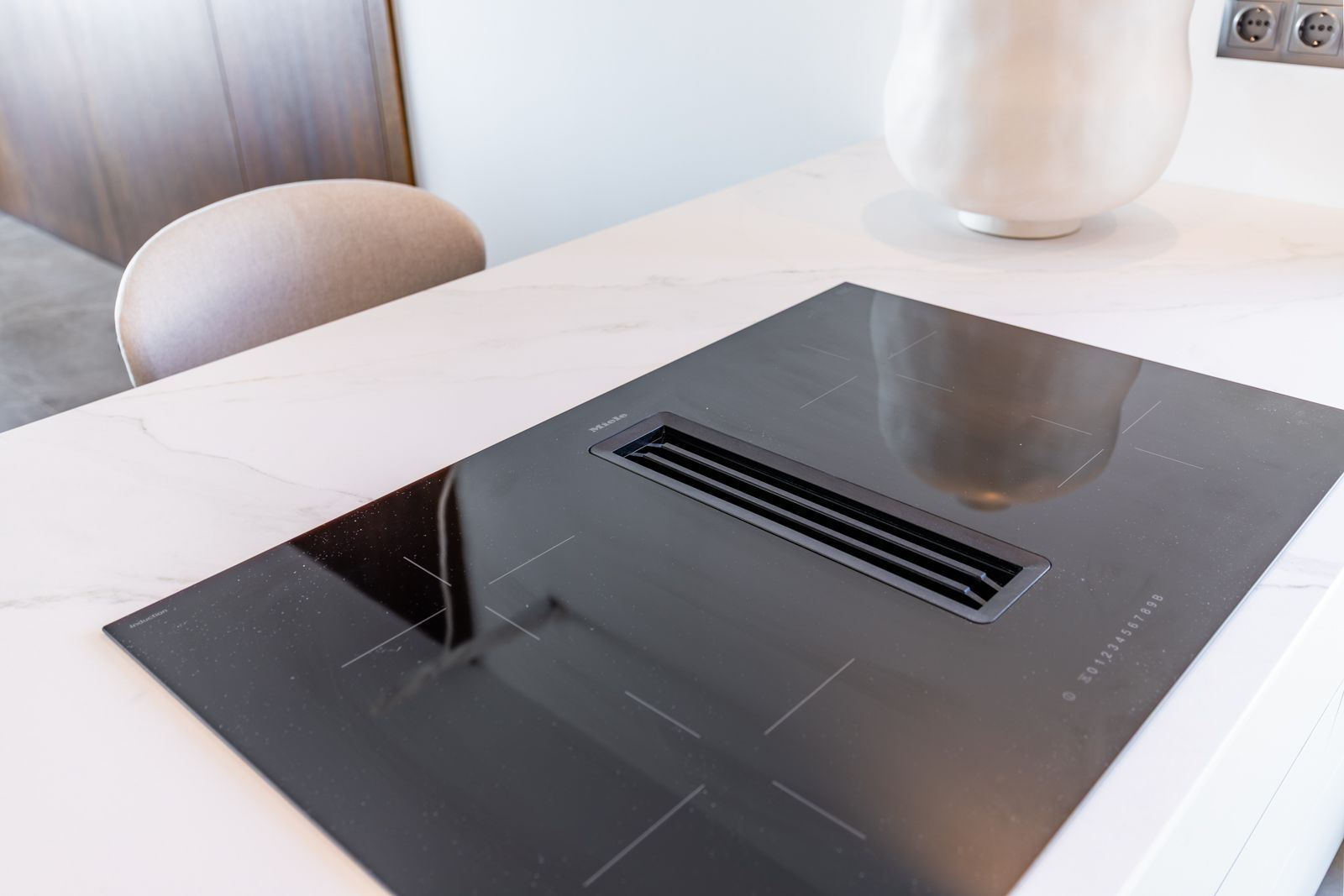 With 412 m² built and a plot of 830 m², the villa features 5 bedrooms, 3 bathrooms, spacious living areas, a designer kitchen with high-end appliances, a wine cellar, a living room with natural wood details, and terraces with views of the Mediterranean Sea.