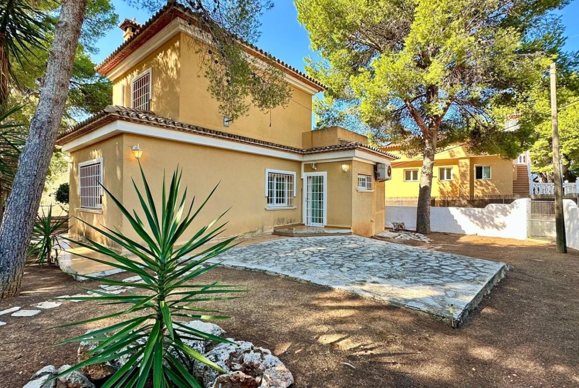 Detached villa with a beautiful garden next to the sea in Las Rotas, Denia, only 100 metres from the cozy beaches and with a perfect southeast orientation.This property has been kept in excellent condition thanks to the fact that it has had only one owner. Its functional and cosy distribution is organised on two floors and a basement.On the main floor, upon entering, we are welcomed by a spacious and bright hall that leads to an elegant living-dining room with fireplace, ideal for relaxing, with direct access to a covered terrace from which you can enjoy the views to the garden. The independent large kitchen has a window to living area and it has a separate laundry room. Furthermore, this floor houses two large bedrooms and a complete bathroom.The first floor is a private retreat where is the master bedroom with an en suite bathroom and access to two terraces offering sea and mountain views.The basement has a large storage room and a garage with capacity for 3-4 vehicles, with direct access to the property, offering comfort and security.Additional features of this property include air conditioning and fitted wardrobes in all bedrooms.Its privileged location, just 100 metres from the beaches and surrounded by a wide range of restaurants and bars on the seafront, makes this villa the perfect choice for those looking for peace and quiet with all the comforts.