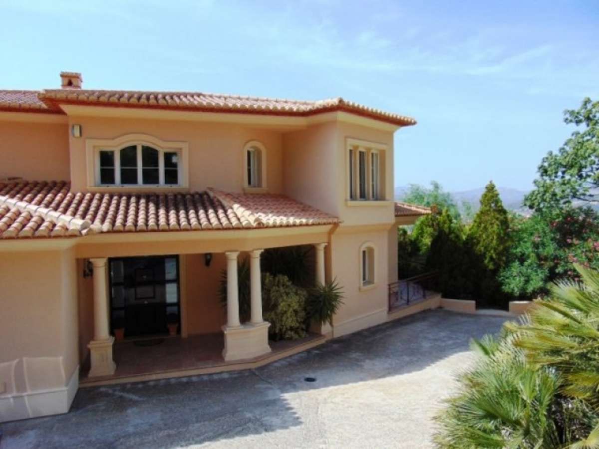 Impressive designed property on the upper slopes of the Montgo with fantastic South facing views.Located 15 minutes from the Old Town of Javea, 10 minutes from La Sella Golf and 15 minutes from the town of Denia.Automatic gates down a gently sloping driveway with plenty of parking, double garage and space for boats or caravans.Porch leading through to an impressive hallway with fabulous wrought iron staircase, leading to upper bedrooms.On the main level at the entrance is a large office/Study/Library, Guest WC, 42m2 Lounge with Feature fireplace and doors leading out onto a wide Naya area overlooking the Swimming Pool, ideal for watching the sunsets.Adjacent is a second lounge ideal TV room or games room. Large Dining room suitable for seating 12 people again with doors leading out onto the terrace.Stylish Kitchen with dining area, featuring central reservation with halogen hob, double oven and Microwave, and separate utility with drying area.Spacious guest bedroom with dressing area and en-suite bathroom with double vanity units.On the upper level are three equally spacious bedrooms all with en-suite bathrooms and with access to a large terrace to enjoy the morning sunrise. The main bedroom has air conditioning and a jacuzzi bath.The 12×6 freeform pool with jacuzzi, pretty terraces and established trees the area and below is a tennis court.On the lower level of the villa accessed internally is a variety of rooms ideal as a gymnasium, apartment, kitchen with plumbing ready. All prepared and ready to go.