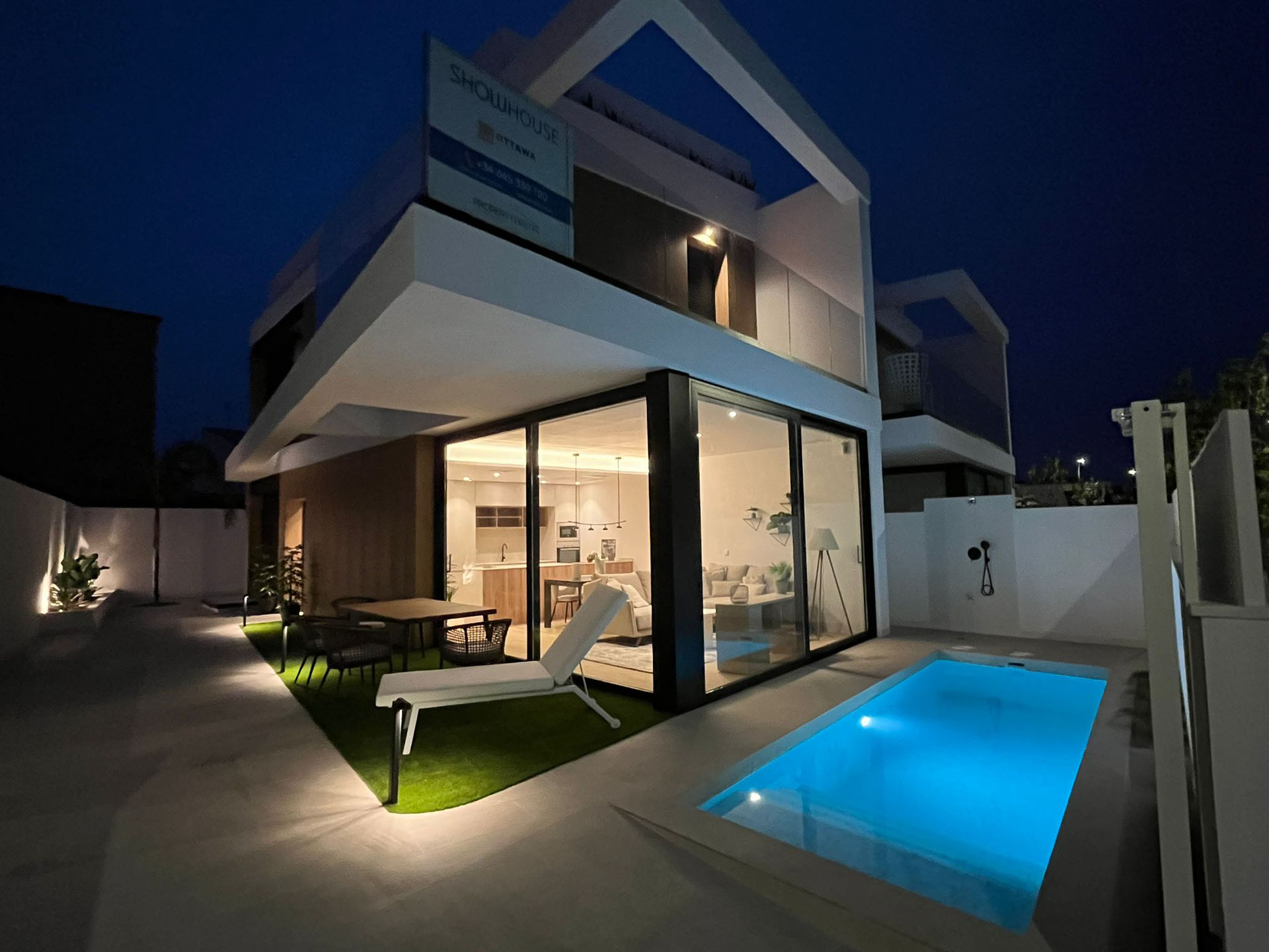 This Luxury 3 Bed 3 Bath detached Villa is located less than 400 metres from the Playa Jesuitas, Torre de La Horadada and is laid out over two floors plus a roof solarium with summer kitchen. Sea Views.