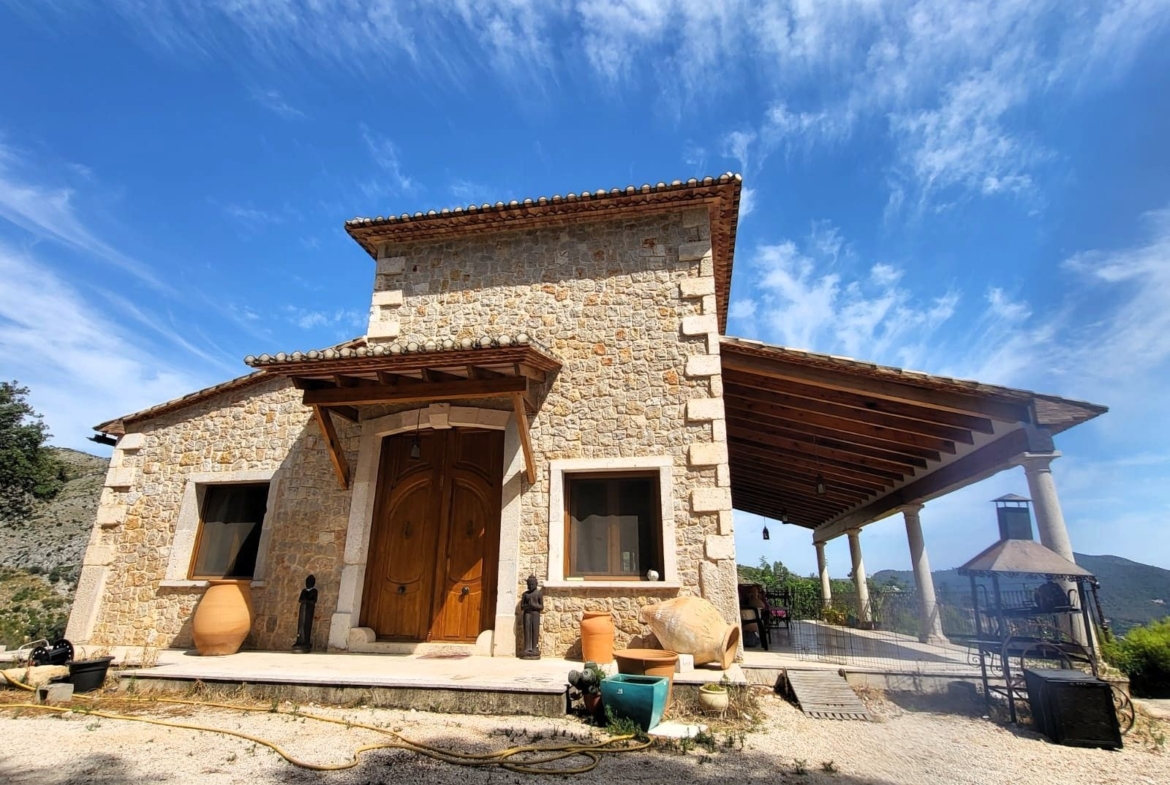 Built area of 250 m² with the possibility to extend by another 250 m², currently in unfinished phase.A 70 m² basement offering multiple possibilities: wine cellar, studio, game room… you decide.The main house features 4 spacious bedrooms and 2 bathrooms, ideal for comfortable family living.Fully equipped independent kitchen, perfect for food lovers.Cozy living-dining room, with wood stove, air conditioning (cool/heat), and radiator heating installation, ideal for both summer and winter nights.Double-glazed windows that ensure thermal comfort and acoustic insulation.A splendid covered naya, the perfect corner to enjoy the stunning open views while sipping coffee or reading a good book.Style and Potential: Its rustic architecture, clad in natural stone, gives it an authentic and inviting personality, perfect for lovers of traditional style. A property with great potential, both as a family home and a luxury investment in a prime location.