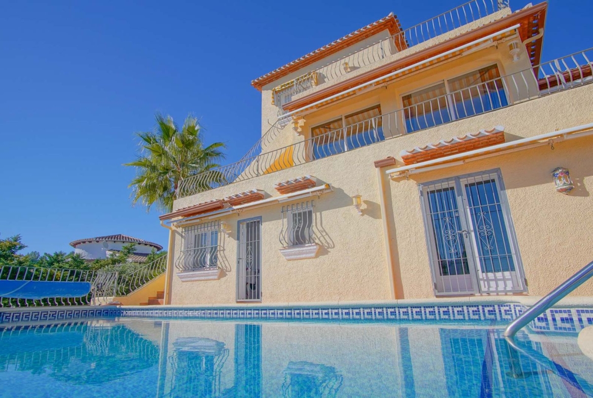 This magnificent villa offers breathtaking views of the Mediterranean Sea and the mountains. Distributed over three floors, the ground floor, at street level, houses the main living area, which has a spacious living room, a fully equipped kitchen with island, 3 bedrooms and a complete bathroom en suite. An external staircase leads to the upper floor, where there is a spacious bedroom with en suite bathroom and a terrace with panoramic views, making this space an ideal place for entertaining, relaxation or even as a work area. The same staircase also leads down to the lower level, where the swimming pool and chill out area are located. Here, there is a laundry area next to a bedroom that is currently empty, offering numerous possibilities as a gymnasium, wine cellar, storage room or whatever other needs you may have.