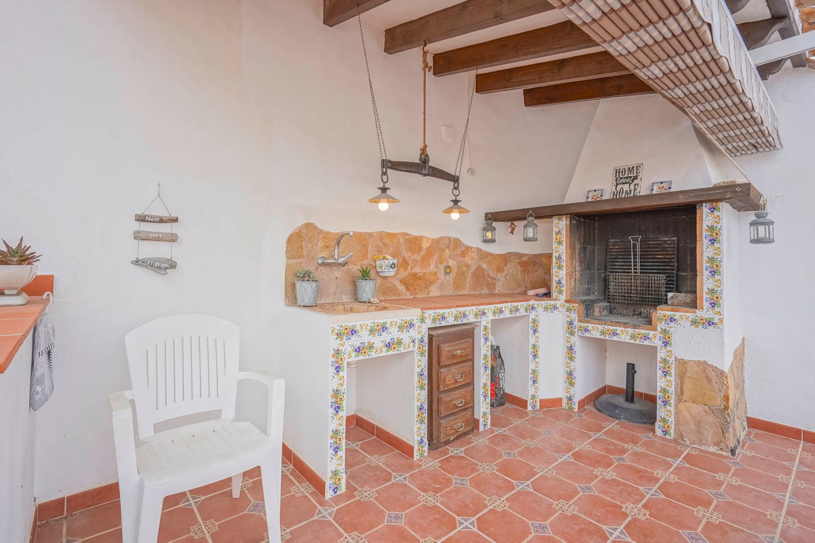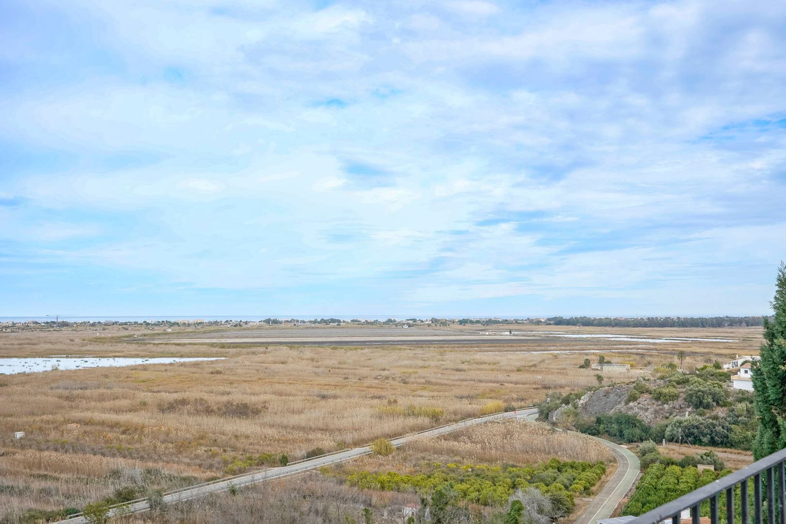 This large, traditional Spanish villa is located in Monte Pego and offers stunning 180º unobstructed views. The views extend from to Pego across the ‘Marjal de Pego’ nature reserve and rice fields to the mountains to the west and down to the coast, with coastal towns of Oliva to the northwest and Denia to the east. The villa consists of two floors and has a separate guest house connected to the main house. Through a very spacious driveway of up to 280 m2, surrounded by plants and trees, you reach the villa and the garage. Both the villa and the garage are one step higher and the driveway has four water drains so you will never have water in your house during heavy rainfall. Thanks to the elevated driveway, you have the luxury of parking your car right in front of the door and entering your house with only one step. An exception for Monte Pego where most houses can only be reached by stairs. You enter the property on the first floor where the main house is located. This consists of a lounge with a fireplace, a dining room with a dining table for 8 and a renovated massive, open-plan kitchen with a new fridge, dishwasher, cooker and oven. There are also two double bedrooms, a renovated bathroom and a renovated guest toilet. Outside is a very large covered terrace of about 20 m2 and a patio with a barbecue and an outdoor kitchen with hot and cold water. An awning has also been installed to provide shade. An external staircase leads to the pool area, which is completely private and not overlooked by any house. The 4 x 8 m pool is surrounded by a large terrace with space for several sunbeds and an outdoor shower with hot water. You can also enjoy the unique views from the pool. On this floor there are two more double bedrooms, a bathroom and an extra room. (This floor is only accessible from outside). There is also an 18 m2 storage room for pool and garden equipment. Adjacent is the guest house terrace with a second outdoor shower also hot/cold. The guest house is connected to the main house by a corridor and consists of a kitchen and lounge on the first floor and a double bedroom, a very spacious bathroom designed by Luigi Colani and a guest toilet on the ground floor. The bathroom has electric underfloor heating. There is the possibility of converting the garage of almost 30 m2 on the first floor into a living room, thus extending the guest house. The guest house has a private entrance in addition to the entrance via the main house. All bedrooms and living room have heating. In addition, several renovations to the villa have been carried out in recent years. For instance, the entire villa has been double-glazed and all windows and doors have been renewed with plastic window frames in wood design, mosquito windows have been installed in all bedrooms and new flooring has been laid both upstairs and downstairs, air conditioning has been installed in all bedrooms, living room and kitchen and the electrical installation has been renewed. Outside, almost 220 m2 of new tiles have been laid including the covered terrace, patio and pool terrace. The renovation has kept the Castilian style, which makes the villa unique. The villa is surrounded by an easily maintained garden with automatic irrigation and has another small terrace facing south. Underneath the villa is a lighted cellar giving you access to all the pipes running under the house. All doors and windows have bars. Included in the price are all furniture, including bedding, crockery, etc. The two partially visible plots of land at the foot of the house are designated ‘green zone’, meaning no building is allowed on them. A very quality villa at a good price with stunning views. Do not hesitate any longer and request your visit! Plans of the villa on request.