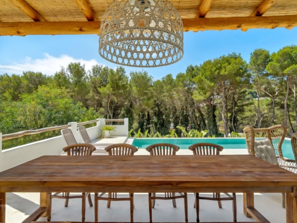 This modern villa offers a comfortable living environment in an excellent location in Javea, with unobstructed views of the green hills and the Mediterranean Sea. On clear days, the panorama even extends to the island of Ibiza. The design combines clean lines and modern architecture with subtle classic accents and high-quality materials.