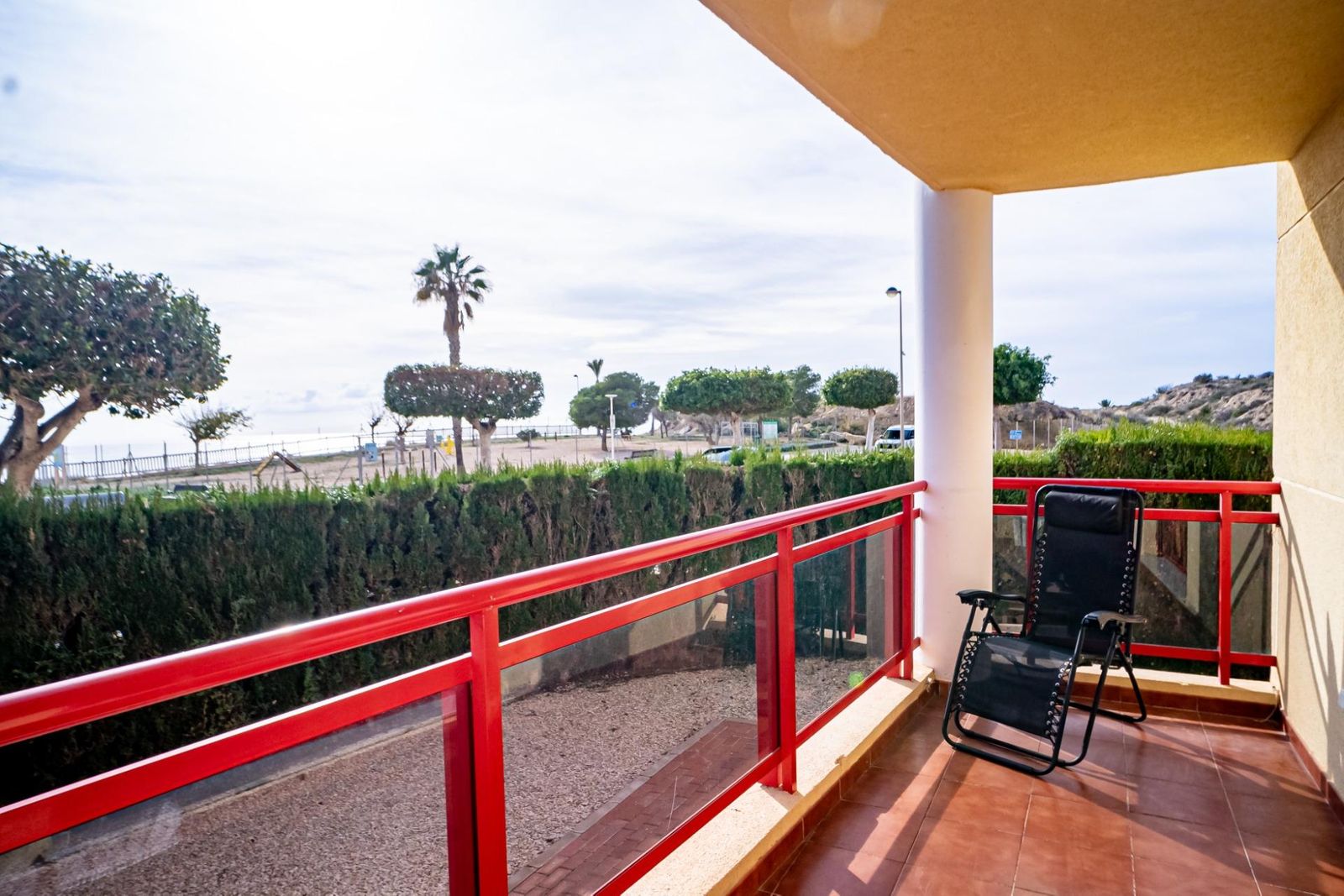 This corner ground-floor apartment is located in a quiet area of Villajoyosa. The property features one bedroom, one bathroom, a kitchen with a utility area, and a living/dining room with access to a balcony offering sea views.