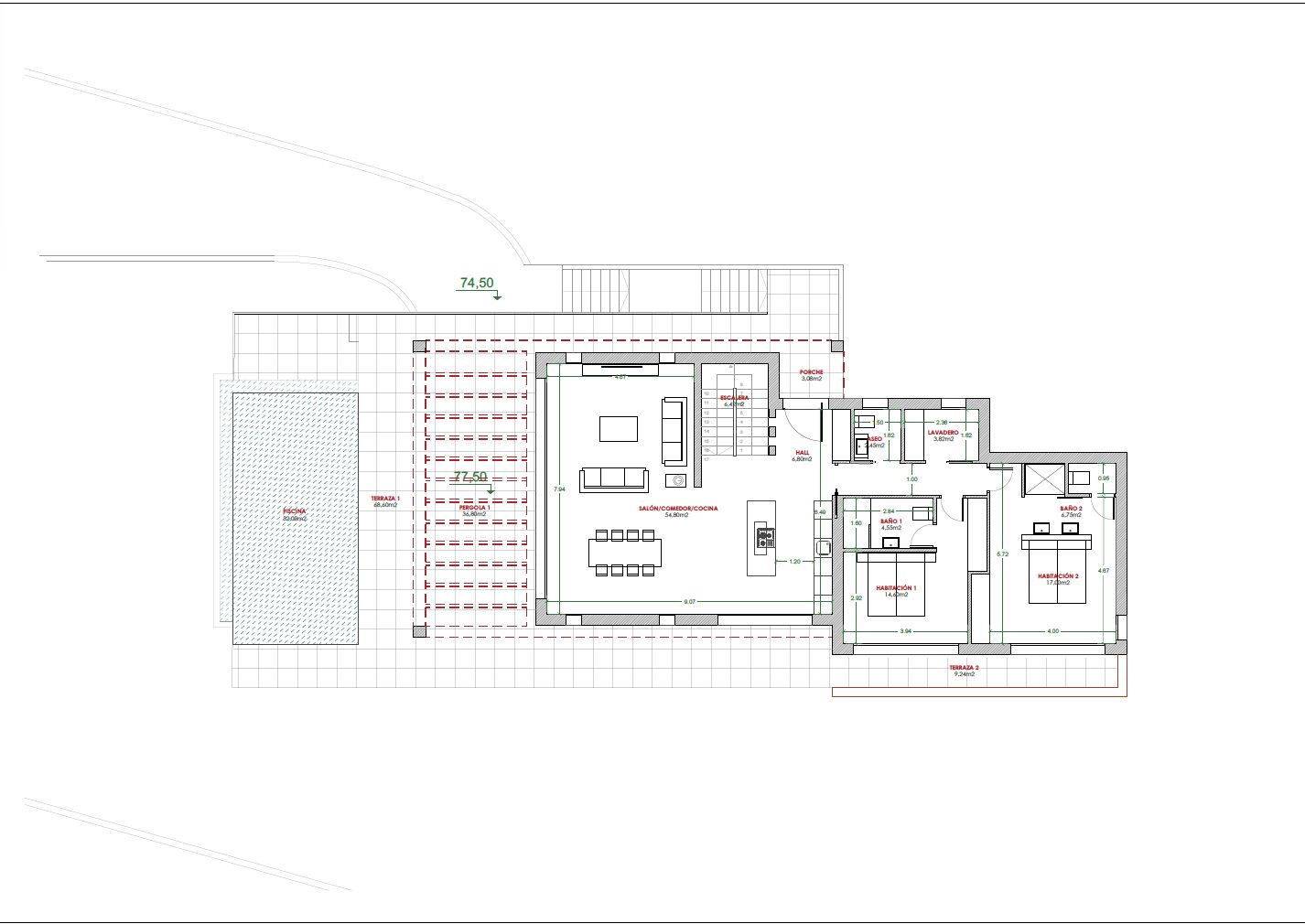 Located in the prestigious residential area of Villes del Vent, this plot of over 1,100 m2 is a blank canvas waiting to be transformed into your ideal home. The current project proposes a villa with 3 bedrooms and 3 bathrooms, each designed with comfort and luxury in mind. The "open-plan" design of the living room and kitchen creates a spacious and welcoming environment, perfect for family enjoyment or entertaining guests. The large glass sliding doors open onto an impressive terrace, where a private pool invites you to immerse yourself in the tranquility of your new home.